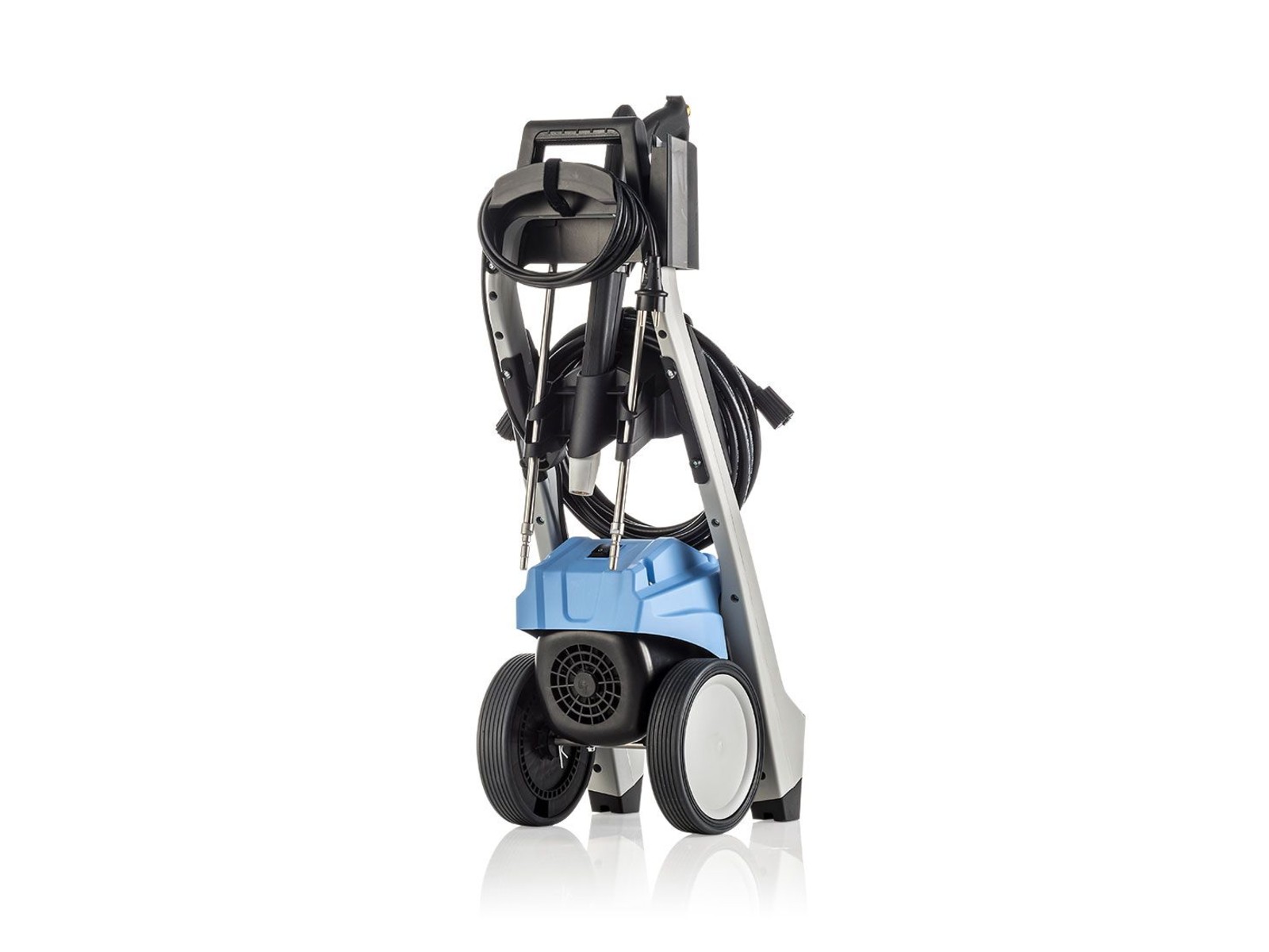 Met het doordachte organisatiesysteem van Quickly is het vinden van accessoires of vervelende slangen en kabels geen probleem meer. Praktische houders voor de stroomkabel, de reinigingslansen en de hogedrukslang houden ze altijd netjes op hun plaats.